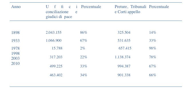 Il numero dei procedimenti come si evince dalla seguente tabella era addirittura superiore di un milione alla fine dell’ottocento e pressoché identico all’attuale negli anni trenta.