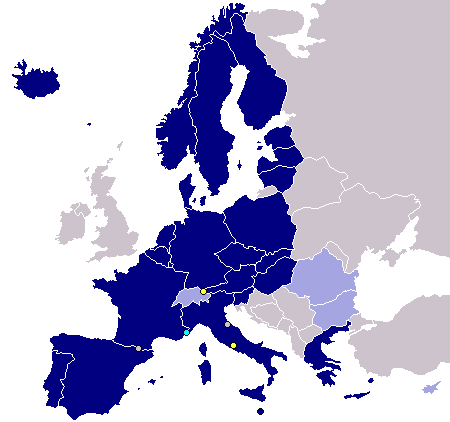 Finlandia, Francia, Germania, Grecia, Italia, Lettonia, Lituania, Lussemburgo, Malta, Paesi Bassi, Polonia, Portogallo, Repubblica Ceca, Slovacchia, Slovenia, Spagna, Svezia, Ungheria, e tre