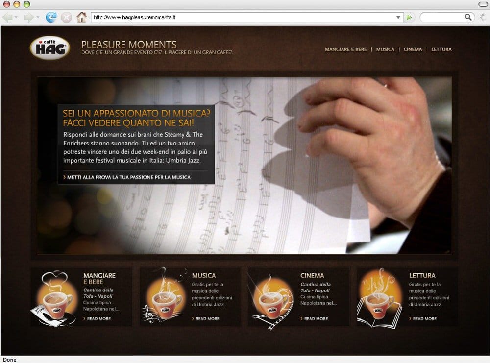 Il sito Hag Pleasure Moments, oltre ad offrire la possibilità di partecipare al concorso, si pone come punto di riferimento per tutti coloro che cercano nel web momenti di svago e