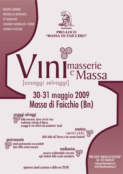 Una festa del vino che presenta i vini IGT e DOC del Sannio e soprattutto i piccoli produttori delle masserie locali che offriranno a tutti i loro vini “grezzi”. Un appuntamento con i sapori