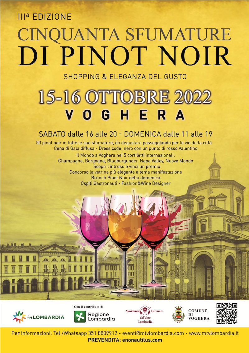 “50 Sfumature di Pinot Noir” è parte del ciclo di manifestazioni “Ogni Giorno in Lombardia” ed è organizzato in collaborazione con Regione Lombardia e con il patrocinio e la collaborazione del Comune di Voghera.
