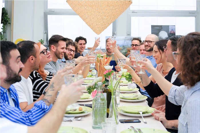 Stefano e Riccardo, insomma, hanno trasformato il pranzo in un convivio dal sapore archetipico cioè dalla forma primitiva ma attuale, dove il cibo è il mezzo che permette di incontrarsi, confrontarsi e capirsi, scoprendo nelle caratteristiche uniche di ciascuno valori nuovi a cui ispirarsi.